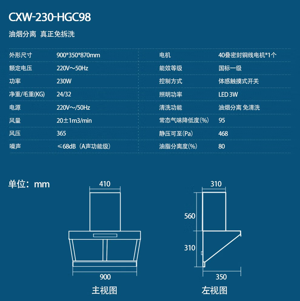HG-C98 吸油烟机_大吸力_油烟分离款_免拆洗_一级能效_黑色