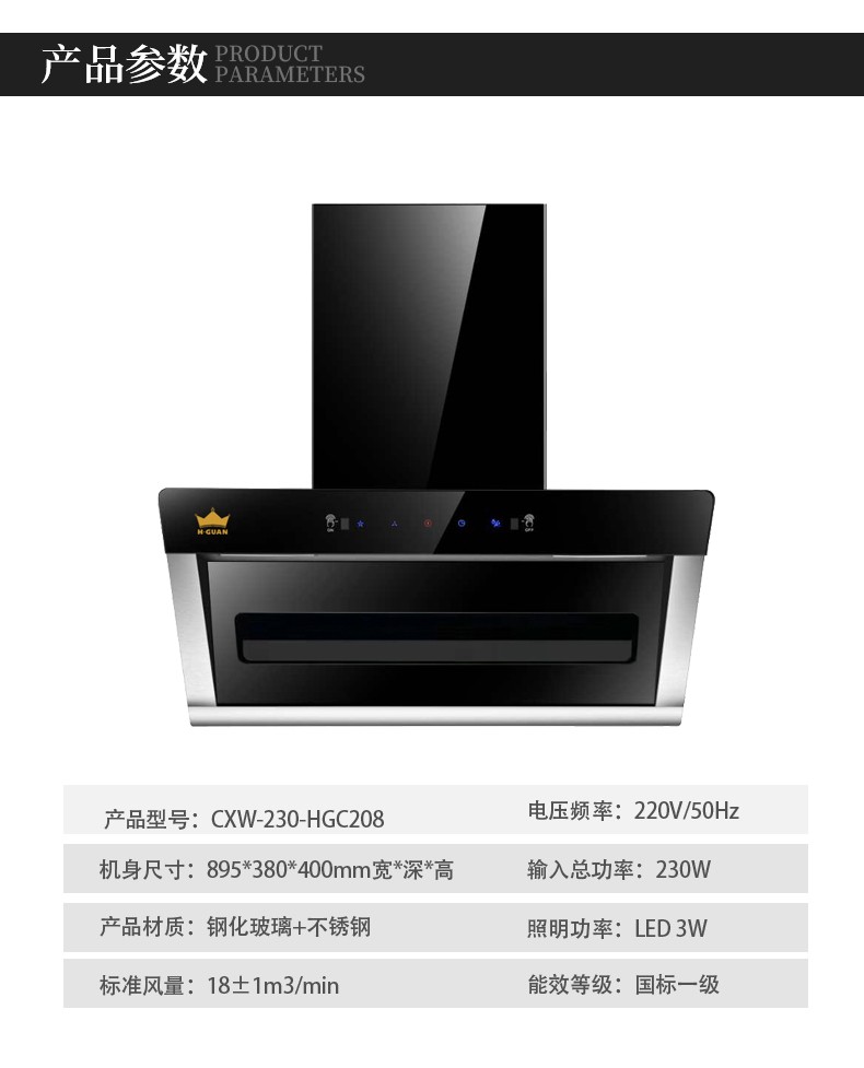 HG-C208 吸油烟机_大吸力侧吸_一级能效