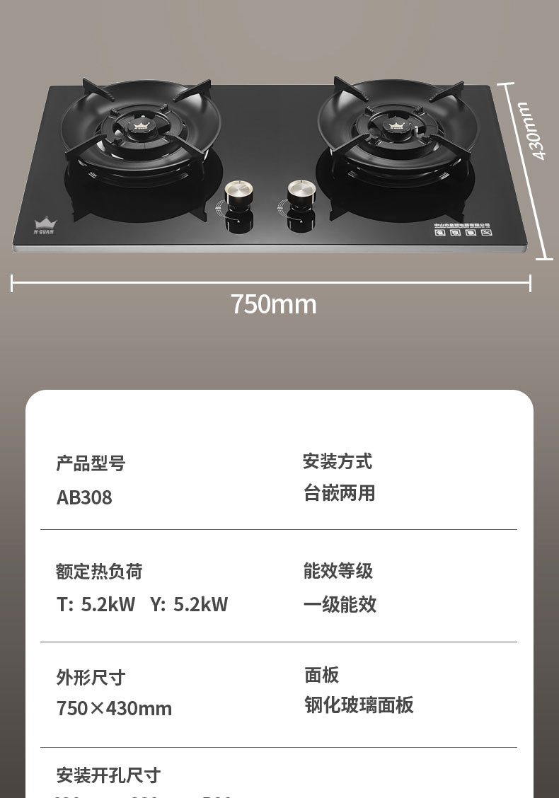 HG-AB308 燃气灶具 5.2KW一级能效