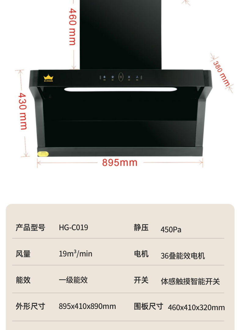 HG-C019 36叠能效电机 喷涂箱体 19m³吸烟量 1级能效